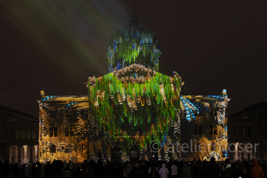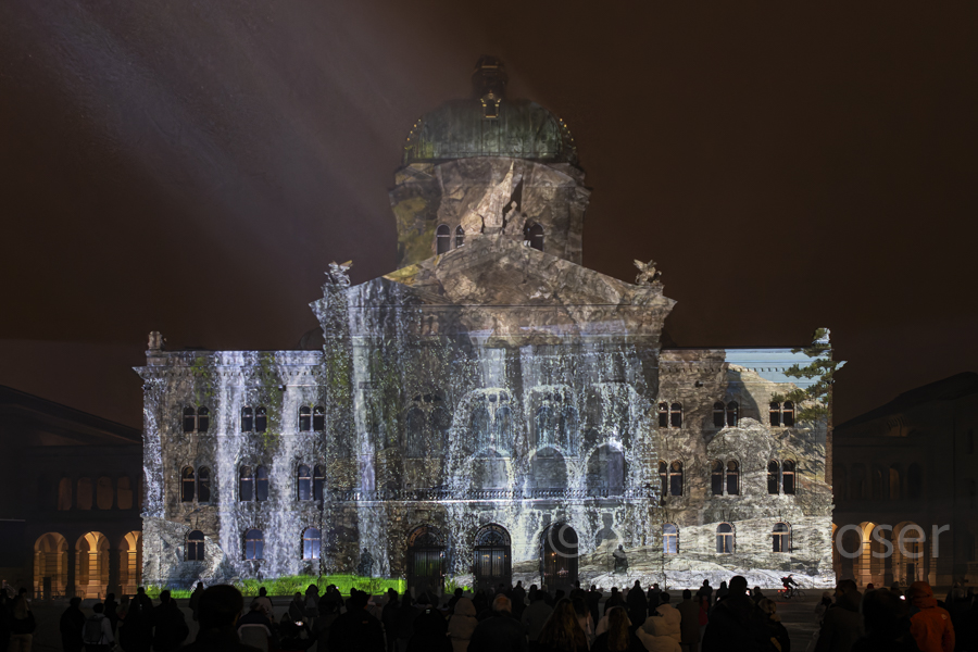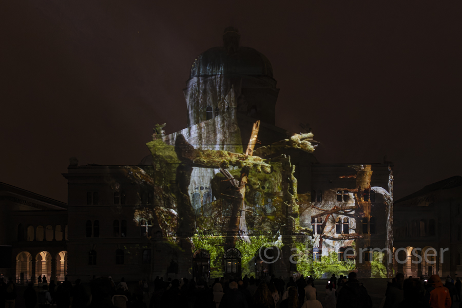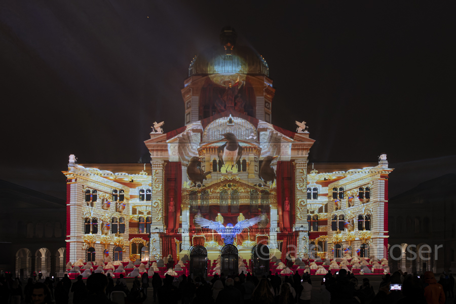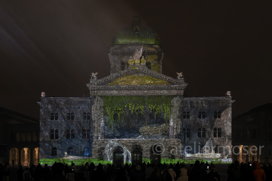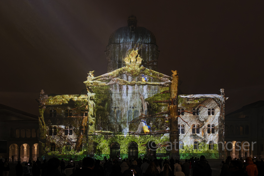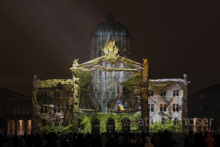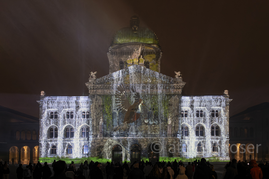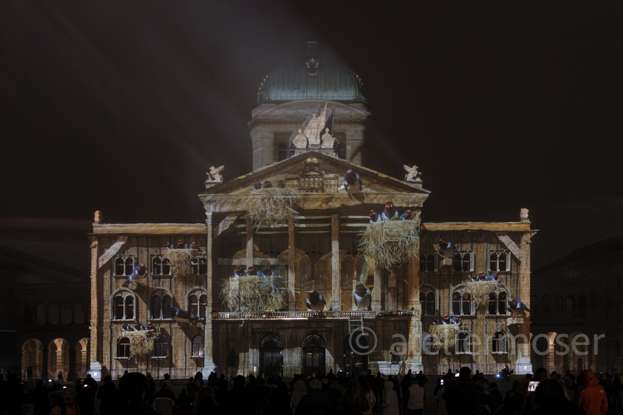 Für eine kurze Zeit hat es nicht nur im Bundeshaus diverse Vögel, sondern auch an der Fassade. In Zusammenarbeit mit der Vogelwarte Sempach entstand eine herrlich-poetische Show mit viel Musik. Schön, dass die Biodiversität nun auch im Bundeshaus angekommen ist - hoffentlich mit nachhaltiger Wirkung.